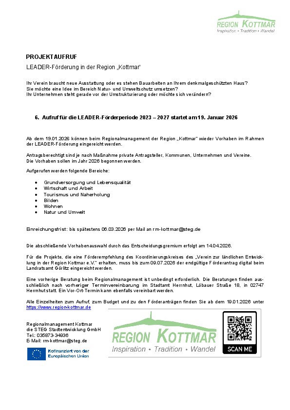 PROJEKTAUFRUF LEADER-Förderung in der Region „Kottmar“